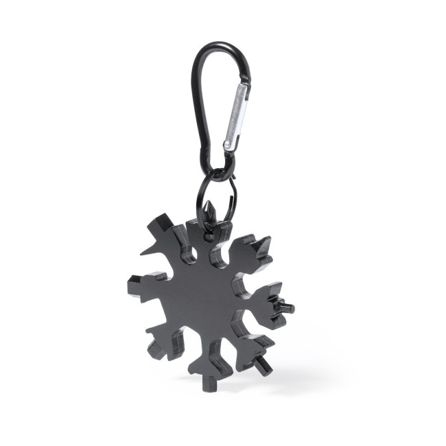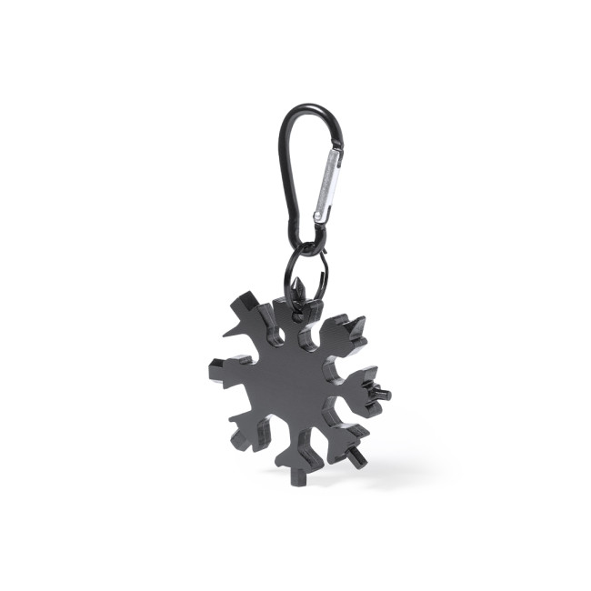 Originale e pratico multiutensile in robusto acciaio inox con finitura nera, con anello di trasporto e moschettone abbinati. Con 17 funzioni, tra cui cacciavite piatto e a croce chiavi esagonali a brugola coltello e apribottiglie. Confezionato singolarmente in una scatola nera.