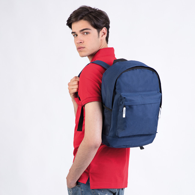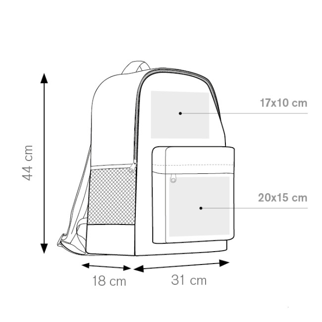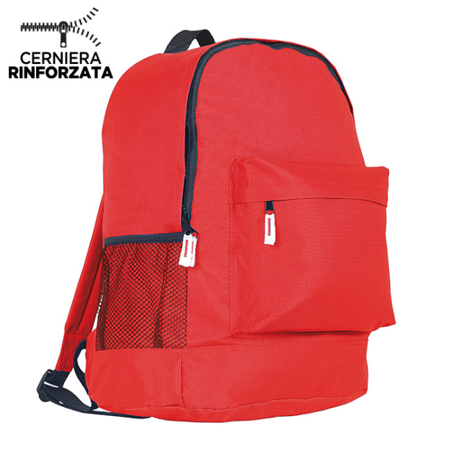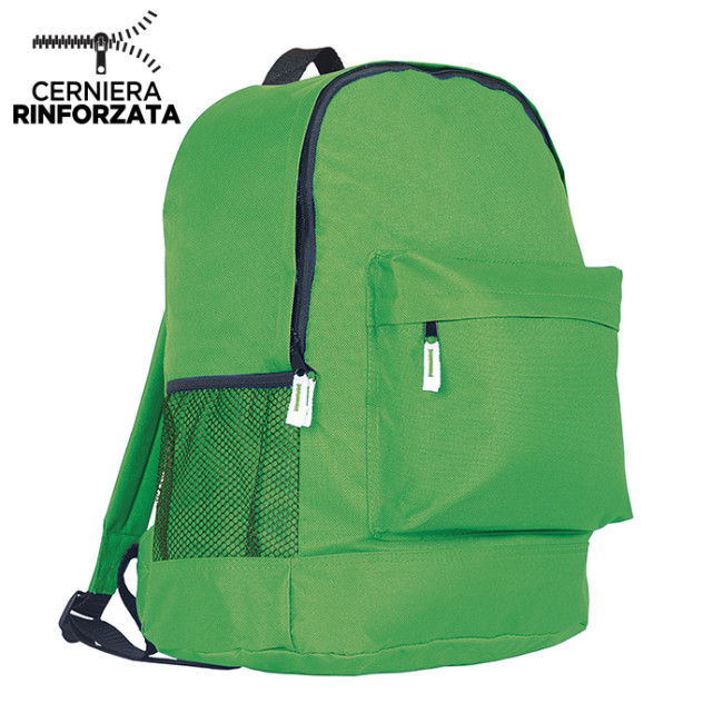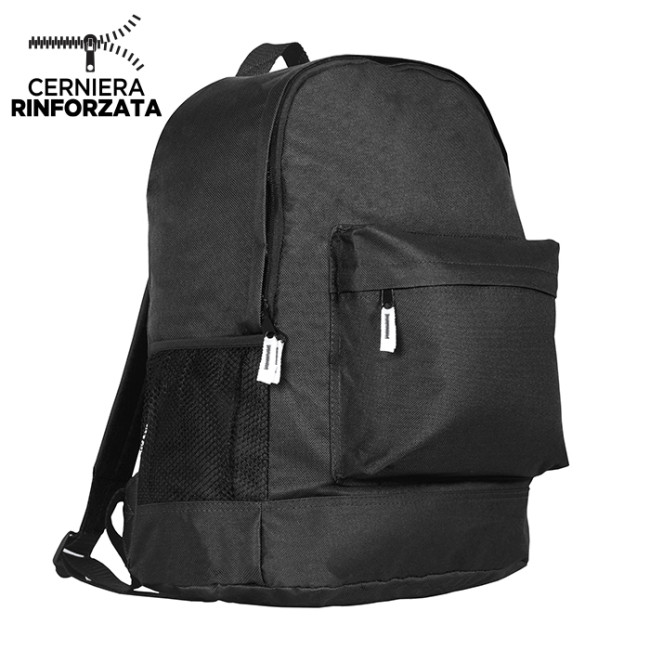 zaino nylon 600D tasca anteriore tasca laterale in materiale traforato spallacci e retro imbottiti tecnica di stampa consigliata: serigrafica - transfer