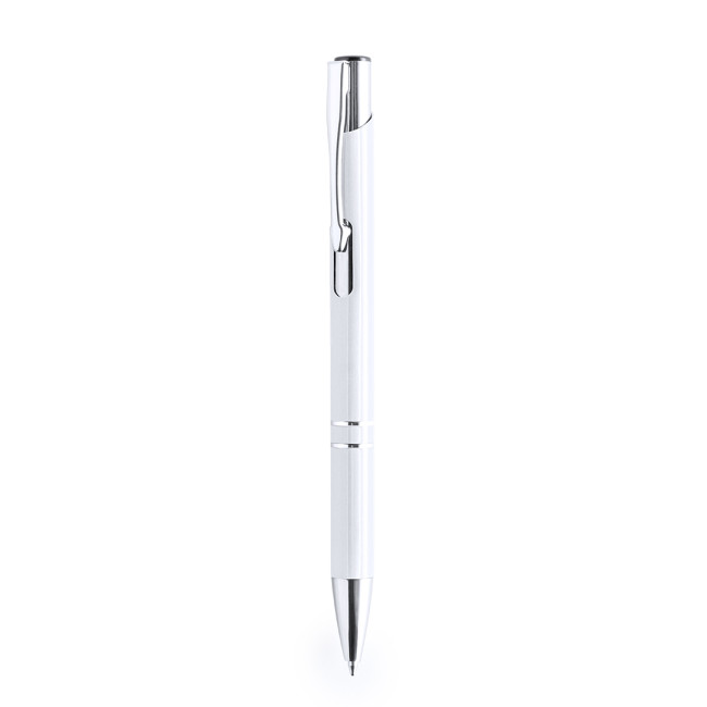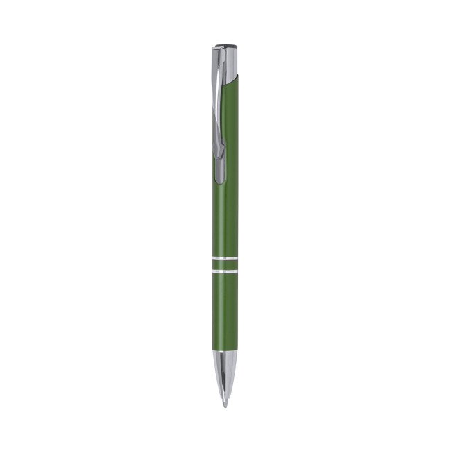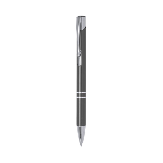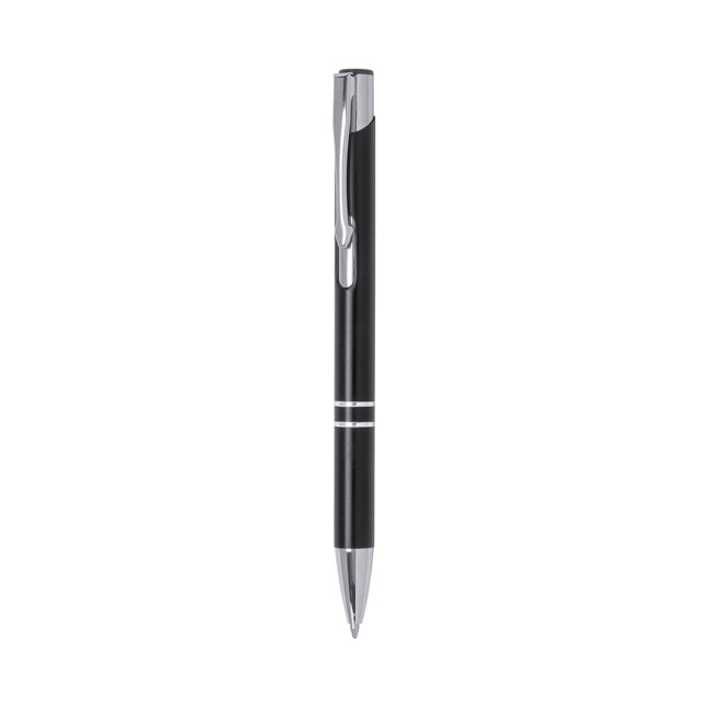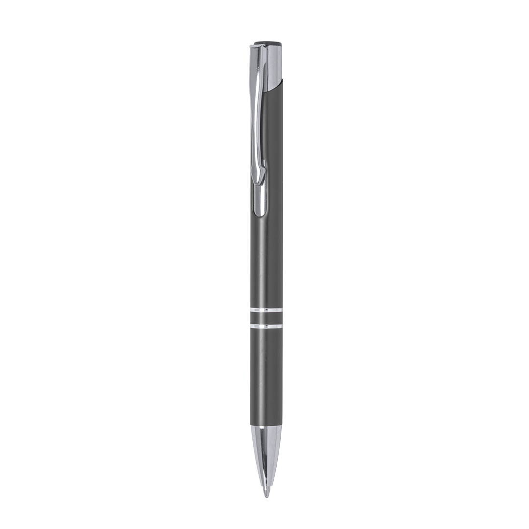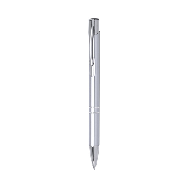 Originale penna con meccanismo a pulsante dall'elegante design bicolore. Fusto in alluminio sagomato con finitura liscia in diversi colori. Clip, anelli e punta originali in argento. Con cartuccia jumbo e refil blu.