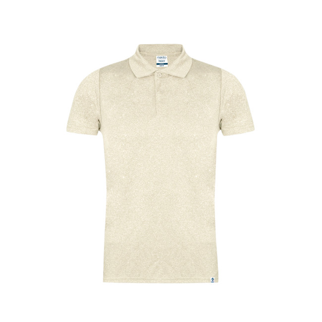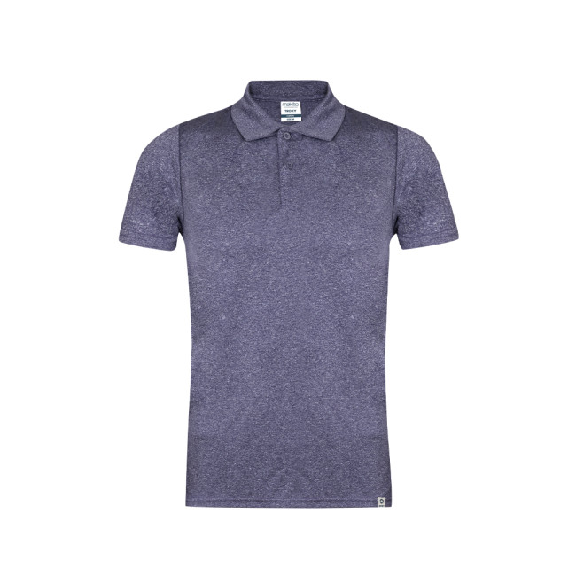 Polo tecnica unisex a maniche corte. Realizzata in tessuto 100% poliestere riciclato e colore effetto melange. La grammatura di 150 g/m2 lo rende un capo leggero, ideale per lo sport e per l'uso quotidiano. Tocco molto morbido e taglio moderno. Abbottonatura con due bottoni tono su tono. Tessuto traspirante, facile da lavare e ad asciugatura rapida. Orlo e maniche con doppie cuciture per garantire la durata e la resistenza all'uso intensivo. Etichetta facilmente rimovibile. Con etichetta esterna in RPET che indica il prodotto riciclato. Disponibile nelle taglie XS, S, M, L, XL e XXL.