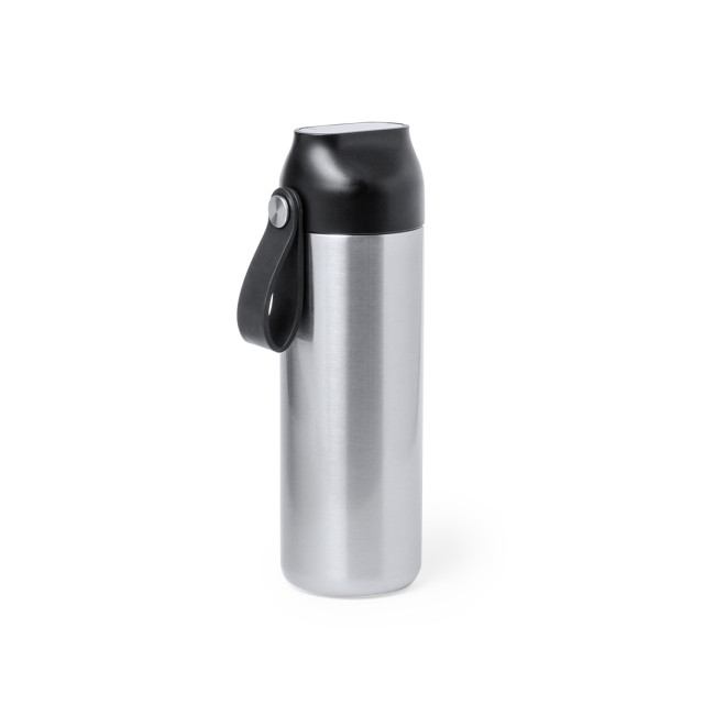Borraccia termica in acciaio inox a doppia parete con capacità di 630 ml, con indicatore di temperatura a sfioramento sul tappo e manico integrato. Con tappo di sicurezza privo di BPA e presentata in un'attraente scatola individuale dal design Kraft e in un sacchetto riciclato. Alimentata a batteria (pile a bottone incluse), con manuale di istruzioni disponibile in inglese e spagnolo.