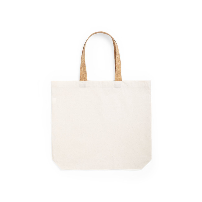 Shopper della linea natura in resistente cotone da 180g/m2 e manici originali in sughero naturale da 53cm rinforzato. Finitura cucita e resistenza fino a 8 kg di peso.