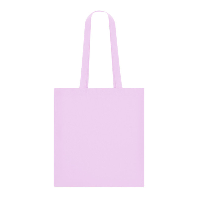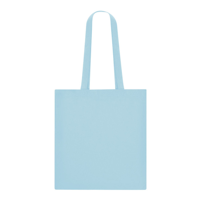Borsa in morbido cotone 140g/m2. Con manici rinforzati lunghi 70 cm, disponibili in un'ampia gamma di colori. Resistente fino a 7 kg di peso.