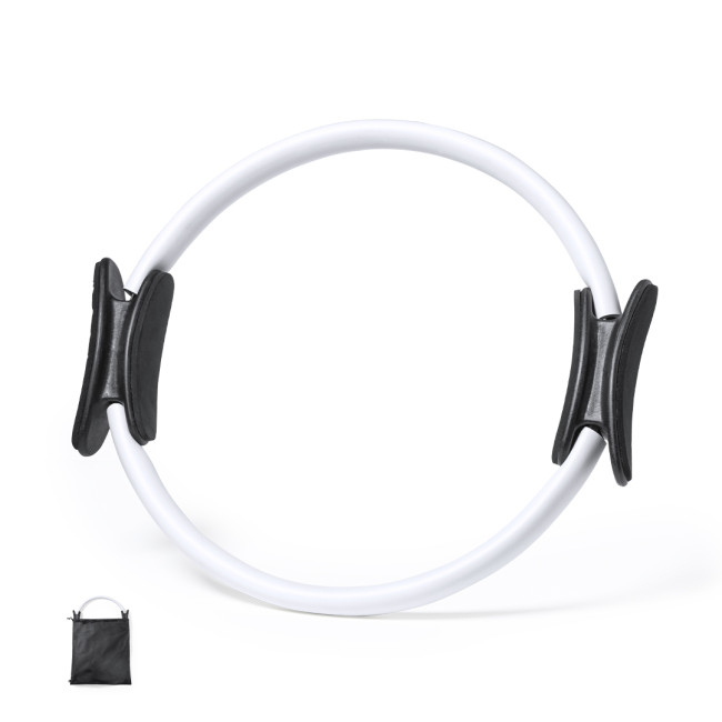 Anello per esercizi in robusta fibra di vetro con rivestimento in EVA. Manici ergonomici in ABS, con manuale di istruzioni in inglese e spagnolo. Confezionato in un sacchetto in TNT RPET, con chiusura a coulisse ed etichetta RPET.Il materiale RPET è realizzato con plastica riciclata, per promuovere il riutilizzo dei rifiuti plastici e contribuire alla sostenibilità del pianeta.