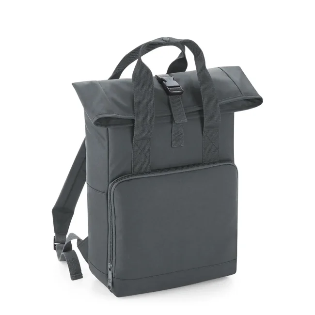 100% 300D poliestere. Zaino con chiusura roll-top, grande tasca frontale aperta su 3 lati per facilitare la personalizzazione. Tasca interna con cerniera, pannello posteriore imbottito. Dimensioni: 28x38x12 cm, capacità: 14 litri, area stampabile: 24x17 cm.