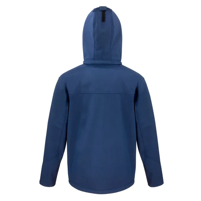 100% poliestere ricilato microfleece. La composizione del prodotto è in fase di conversione al polistere riciclato. Si prega di notare che è in corso la transizione delle giacenze. Giacca in softshell 3 strati anti-vento, traspirante e impermeabile, tessuto interno in caldo micropile, cappuccio regolabile e rimovibile, zip frontale intera e 1 tasca lato cuore con zip, etichetta neutra.
