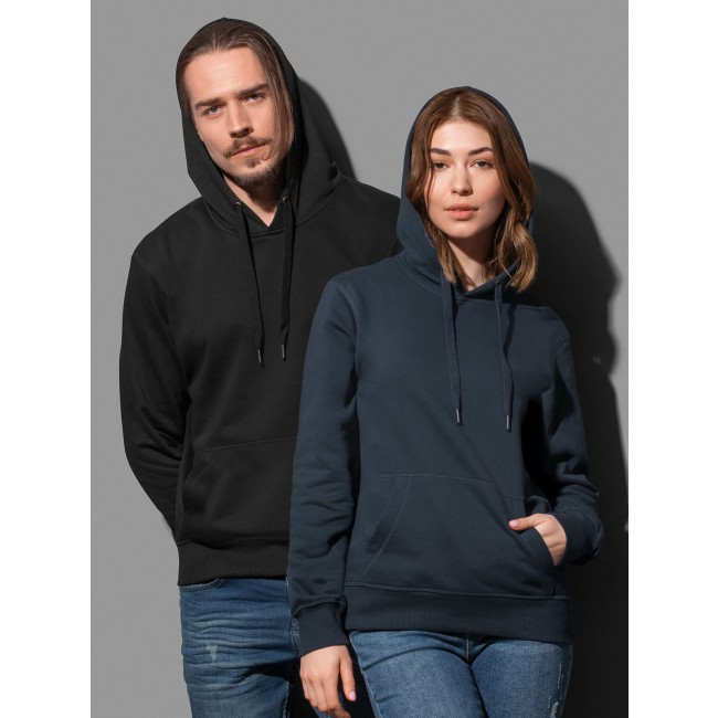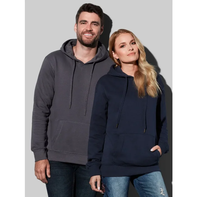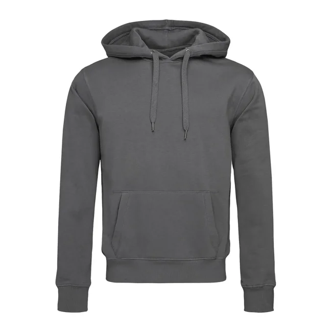 80% cotone, 20% poliestere. Felpa con maniche set-in, felpata internamente, tasca a marsupio, cappuccio a doppio strato con cordoncino tono su tono, occhielli ed estremità del cordino effetto ottone, orlo inferiore in costina, struttura con cuciture laterali, etichetta strappabile. Col. GYH: 70% cot. 30% pol.