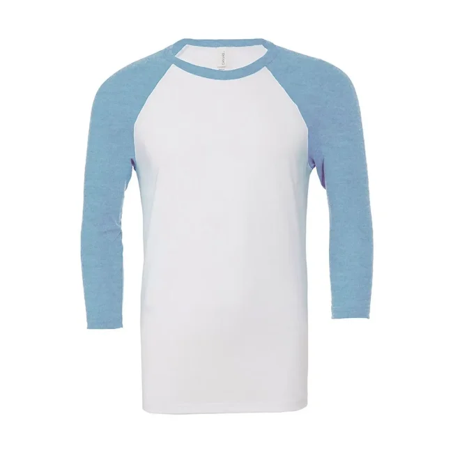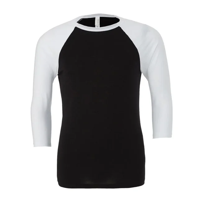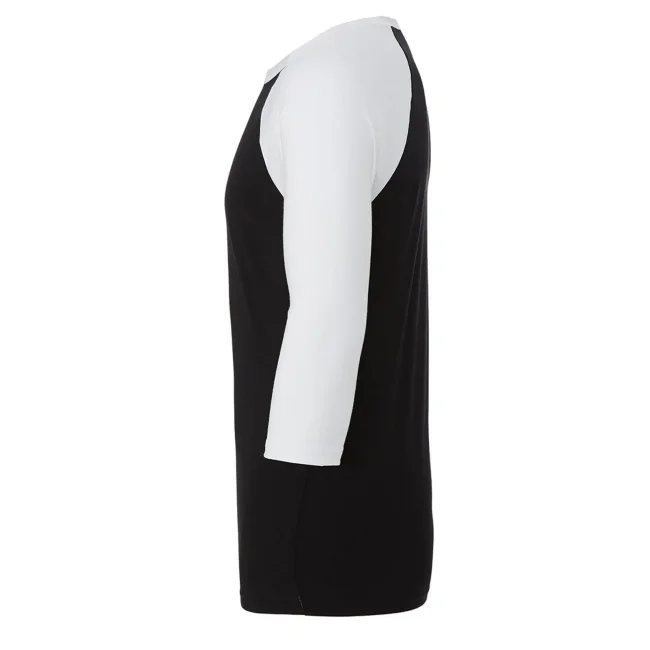 52% cotone pettinato ring-spun, 48% poliestere. T-shirt baseball manica 3/4 raglan, girocollo di colore contrastante. Vestibilità moderna, struttura con cuciture laterali.