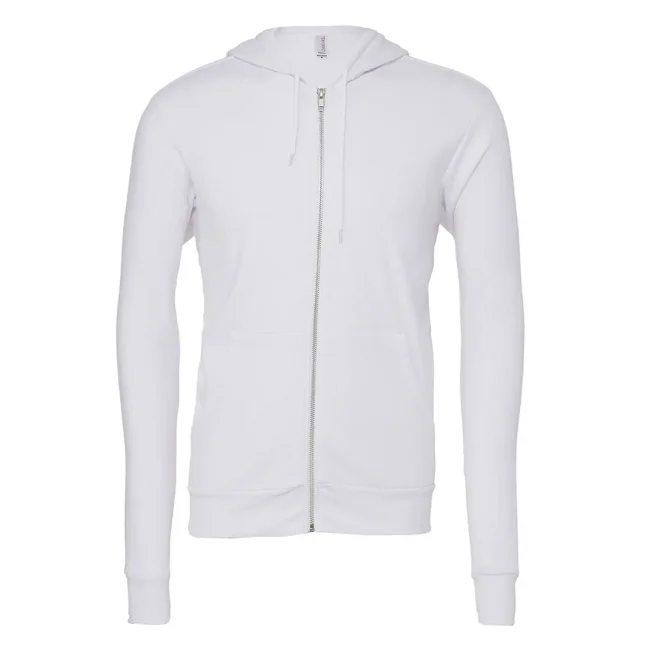 52% cotone ring-spun, 48% poliestere. Felpa maniche set-in, zip in metallo in contrasto, tasca a marsupio, polsini e orlo inferiore in costina. Cappuccio cordino in contrasto, struttura con cuciture laterali, felpata internamente. Etichetta removibile. Col.Digital: 100% pol. Col.Marble: 85%cot.15%pol. Col.Neon: 60%cot.40%pol. (Digital/Marble: 240g/m²)