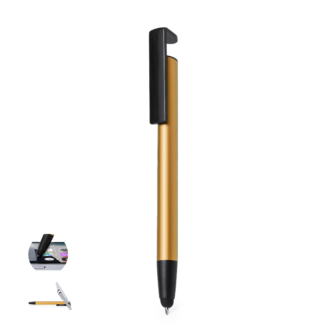 Penna con meccanismo a pulsante, in robusto alluminio. Con supporto per dispositivi mobili integrato a clip e fusto liscio in una vasta gamma di colori metallizzati. In inchiostro blu e confezionata singolarmente in una busta riciclata.