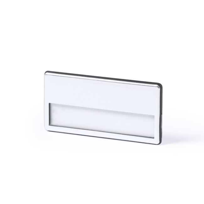 Badge portanome con finitura lucida. Dorso con doppio sistema di chiusura - clip metallica e spilla di sicurezza - per una vestibilità sicura.