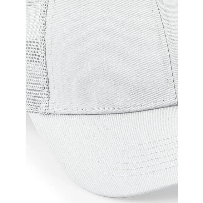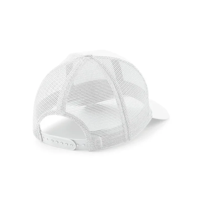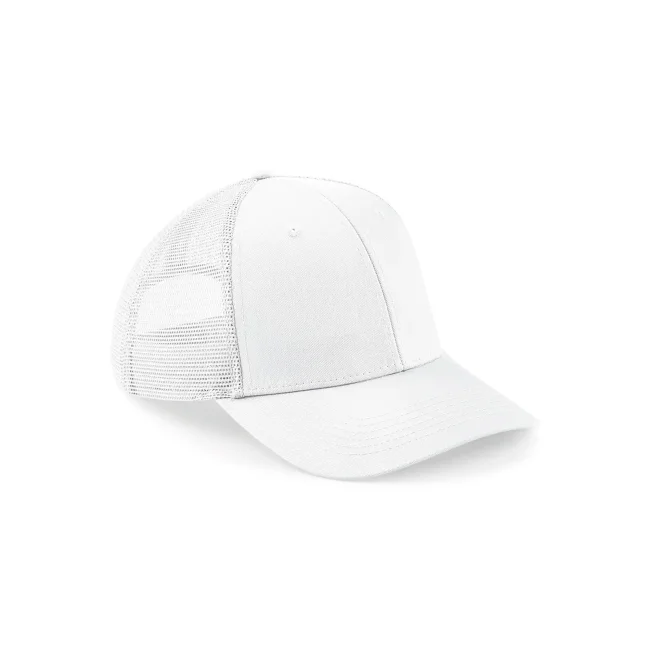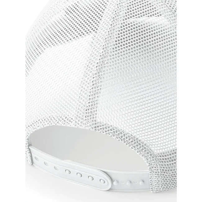 85% poliestere 15% cotone. Cappellino a 6 pannelli con pannello centrale a visiera, pannelli posteriori in mesh 100% poliestere, visiera semi-arrotondata, pannelli frontali strutturati, occhielli di ventilazione, chiusura regolabile snapback, taglia unica, etichetta removibile.