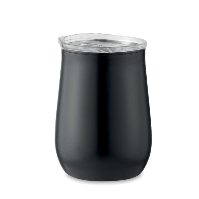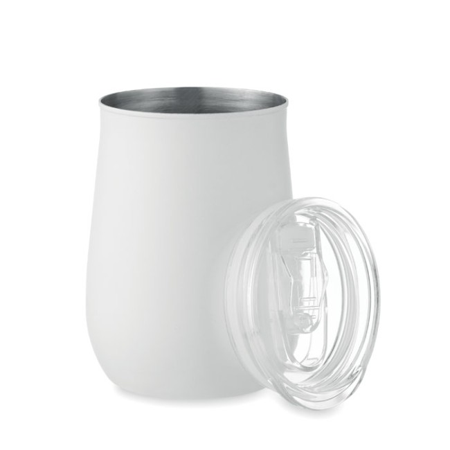 Bicchiere in acciaio inox riciclato (90% acciaio inox riciclato e 10% acciaio inox) verniciata a polvere con coperchio con foro per cerniera scorrevole. Capacità: 500 ml.