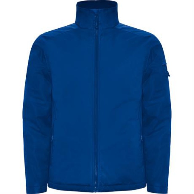 Giacca imbottita in tessuto molto resistente. Collo alto con interno foderato a costine 2x2.· Cerniera anteriore in tinta con protettore per il mento.· Due tasche anteriori doppia funzione. Comprende un tasca aperta ed una con cerniera.· Tasca con cerniera ed abbottonatura sulla manica sinistra.· Tasca interna con cerniera lato sinistro.· Regolatori con elastico all'interno nel girovita.
