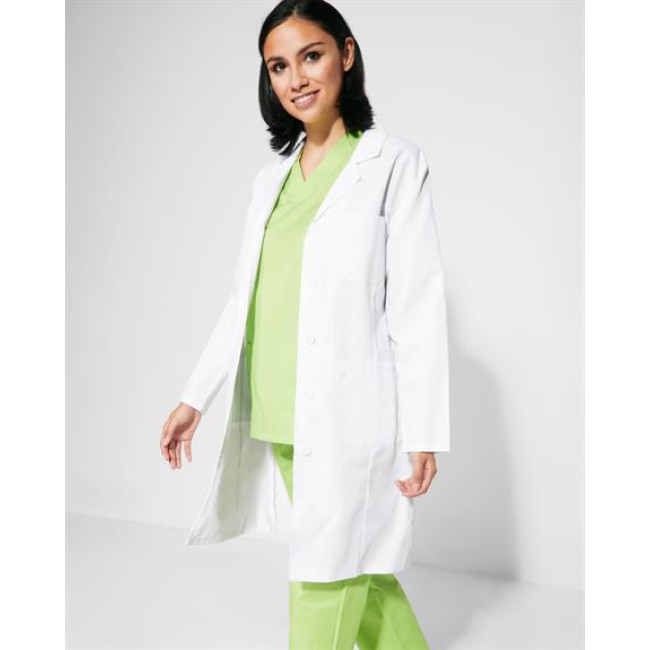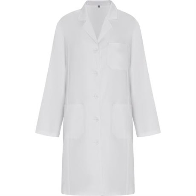 Camice di serivizio manica lunga aderente.· Collo con bavero.· Apertura centrale con 5 bottoni in tinta.· Una tasca sul petto e due laterali.· Cinturino posteriore.