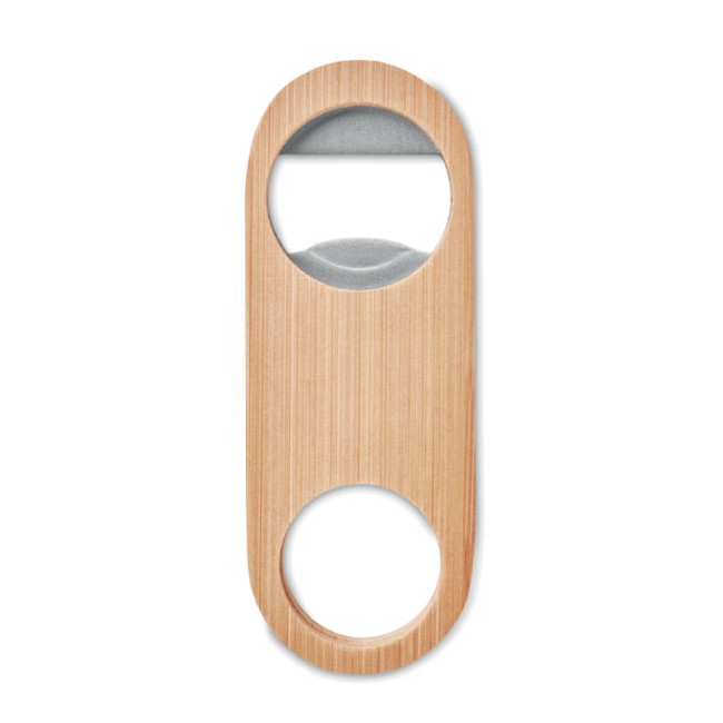 Apribottiglie in acciaio inossidabile con superficie in bamboo. Il bamboo è un prodotto naturale, potrebbero esserci lievi variazioni di colore e dimensioni tra un articolo e l'altro, che possono influire sul risultato finale della personalizzazione. FSC®-certified | FSC 100%, N5.7, FSC-C213206