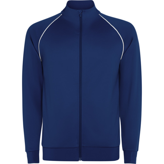 Felpa sportiva con collo alto, maniche raglan e zip frontale. Orlo, colletto e polsini a coste 1x1. Nastratura del colletto in tessuto principale. Dettaglio scollo posteriore e polsini in tessuto principale. Bordino riflettente sulle cuciture raglan sul davanti e sul retro.