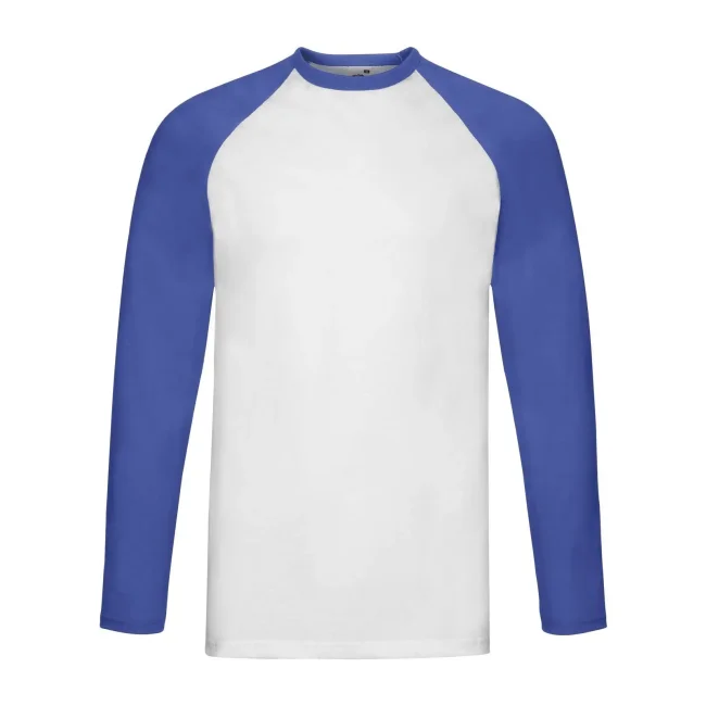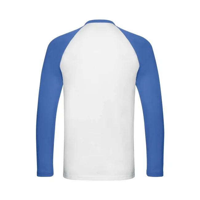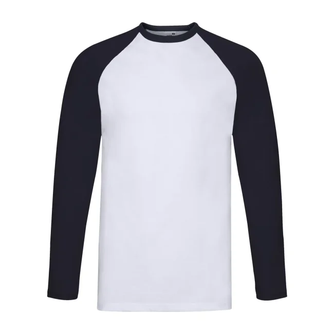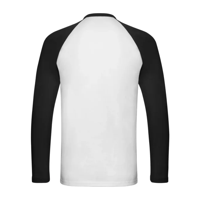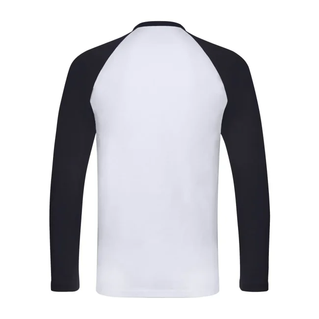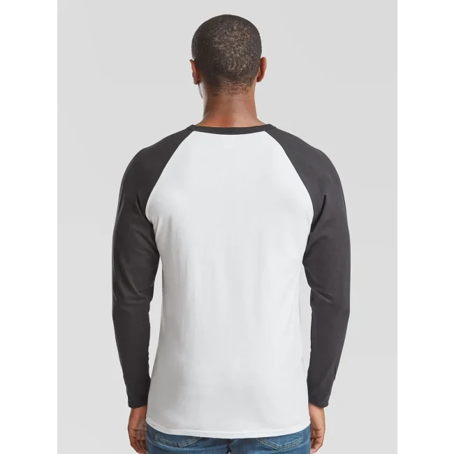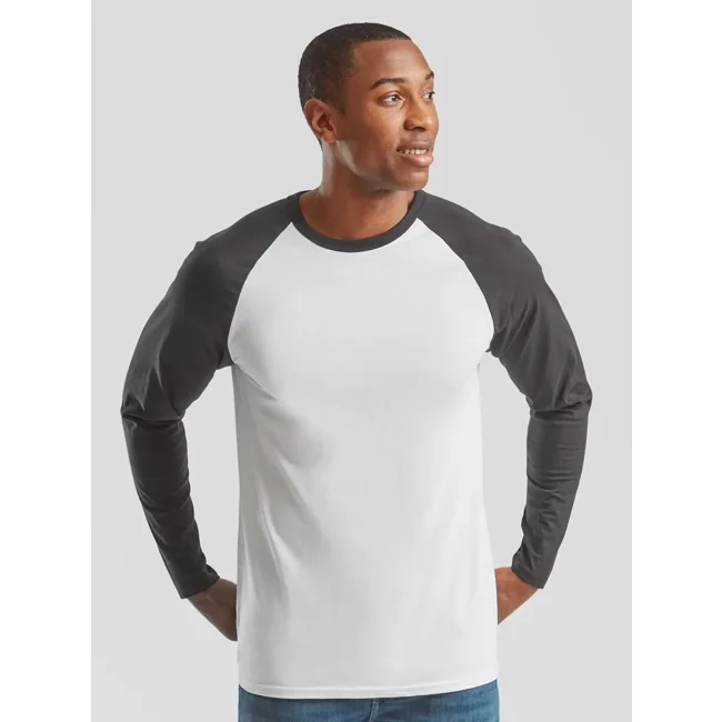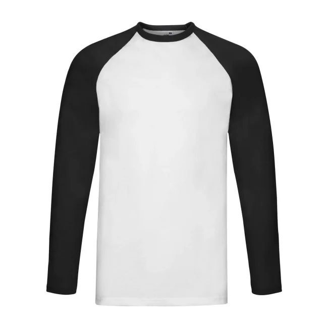 100% cotone. T-shirt baseball manica lunga raglan, girocollo con costina 1 x 1 in Lycra di colore contrastante. Tessitura compatta per una migliore stampabilità. Struttura con busto tubolare.