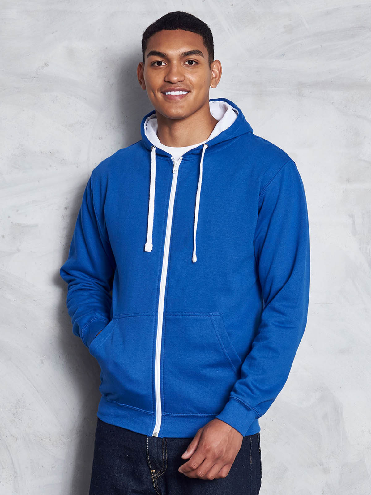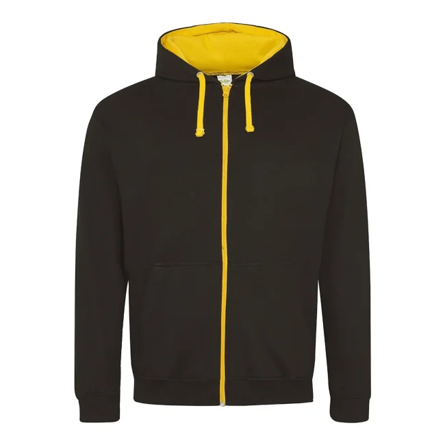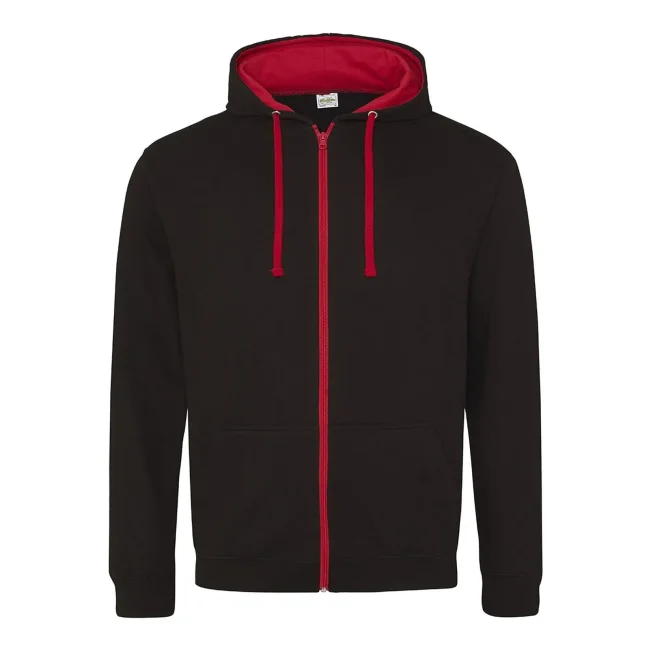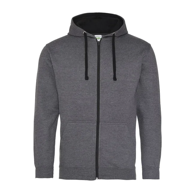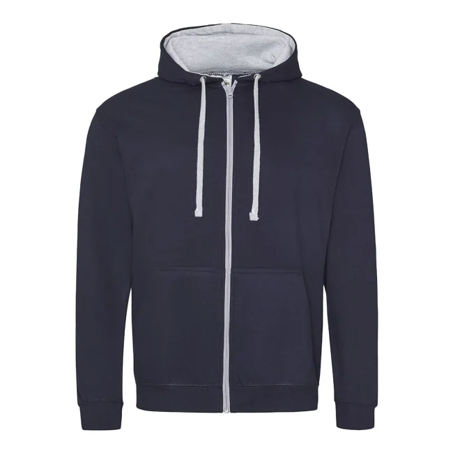 80% cotone ringspun, 20% poliestere. Felpa con cappuccio doppio strato e chiusura con zip in plastica. Cuciture doppie a dettaglio, interno del cappuccio e cordoncini piatti a contrasto, tasca a marsupio, felpata internamente, polsini e orlo a costine. Cotone morbido sul davanti per una superficie di stampa ideale. Etichetta a strappo perfetta per il rebranding.