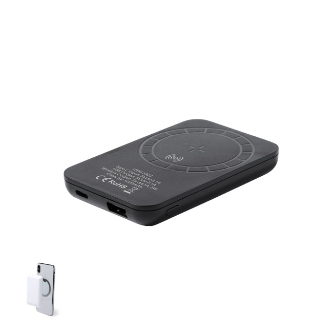 Power Bank con tecnologia di ricarica wireless ad alta capacità -5.000 mAh-. Design compatto con attacco magnetico per permetterne l'utilizzo del dispositivo durante la ricarica. Ingresso di alimentazione Type-C e connessione di uscita USB, con cavo di ricarica Type-C incluso. Pulsante ON/OFF, LED indicatore dello stato di carica e grande area di stampa. Confezionato singolarmente in una scatola dal design attraente, con manuale di istruzioni in inglese e spagnolo. Include un anello magnetico. Utilizzabile con dispositivi con tecnologia Magsafe e Qi.Le capacità indicate in tutti i nostri Power Bank sono reali, utilizzando solo batterie di grado A e non riciclate, con una vita utile di almeno 500 cicli di carica e secondo le norme CE. Inoltre, sono fabbricati secondo gli standard RoHS e in conformità con i seguenti requisiti di sicurezza: Sistema di protezione da sovraccarico del power bank. Sistema di protezione di scarico completo per una maggiore durata del power bank. Sistema di blocco per prevenire i cortocircuiti. Sistema di trasferimento di carica costante, secondo la capacità del dispositivo di destinazione.