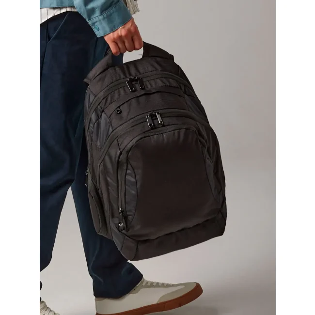 100% 600D poliestere. Zaino Bretelle imbottite e regolabili, compatibile con laptop fino a 15,6 pollici. Con numerosi compartimenti e tasche inter ne ed esterne. Tasche laterali con cerniera. Dimensioni: 30 x 48 x 30 cm. Capacità: 26 litri.