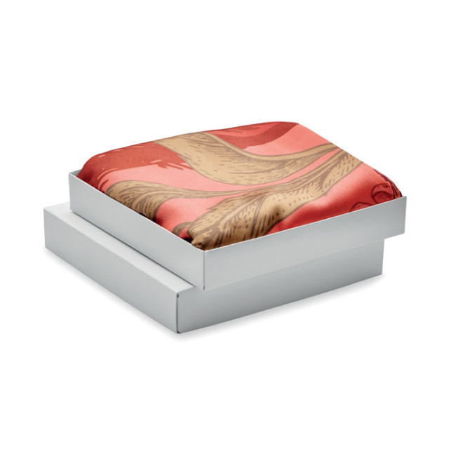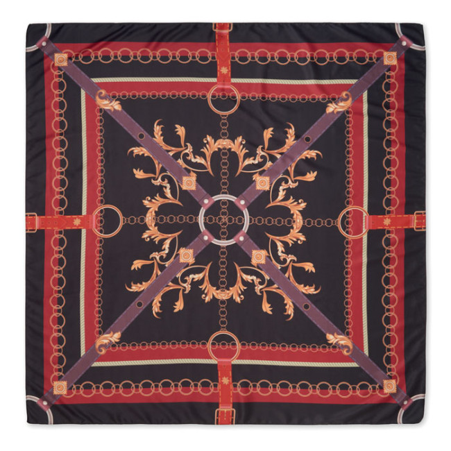 Scialle in poliestere riciclato satinato con motivo colorato.