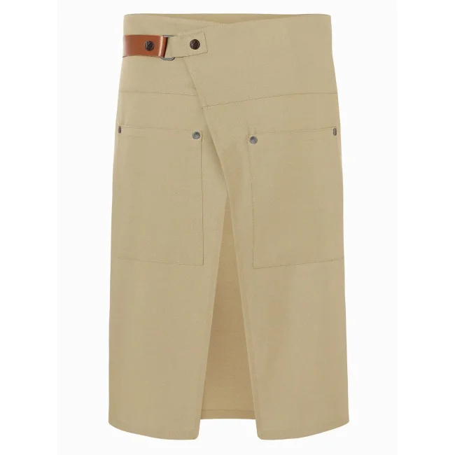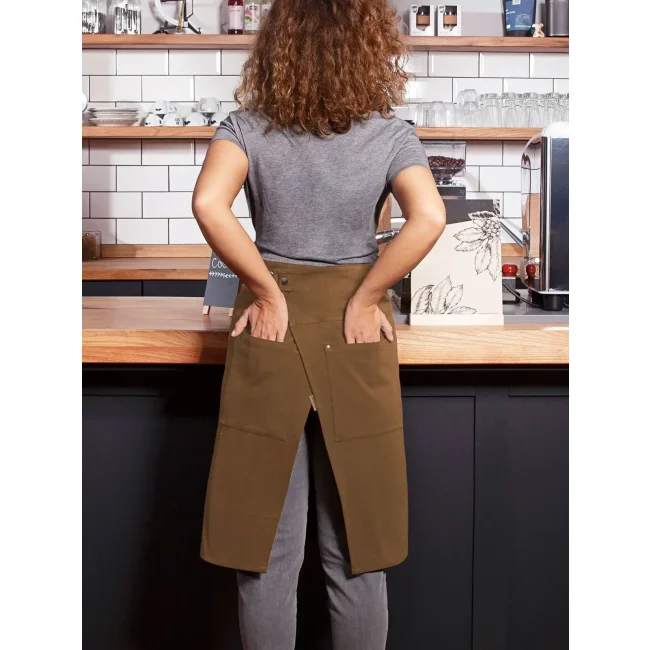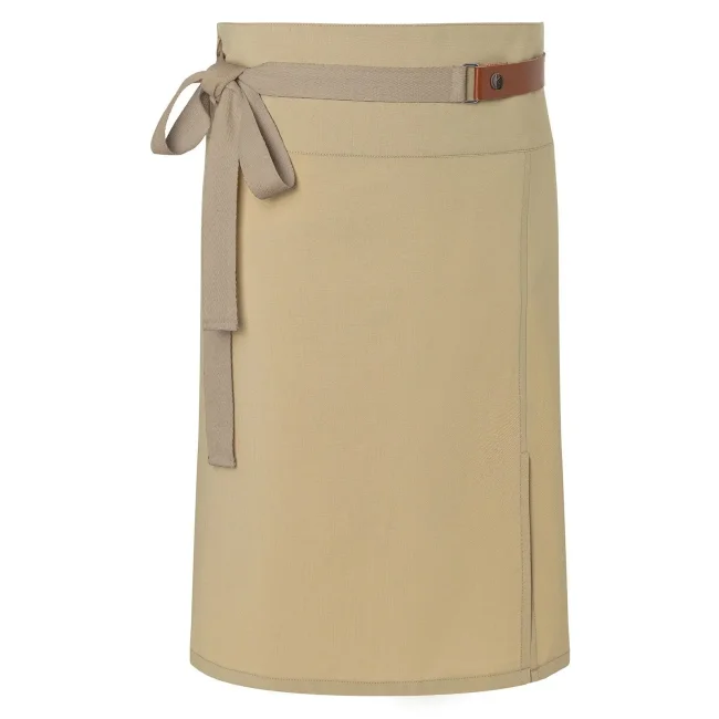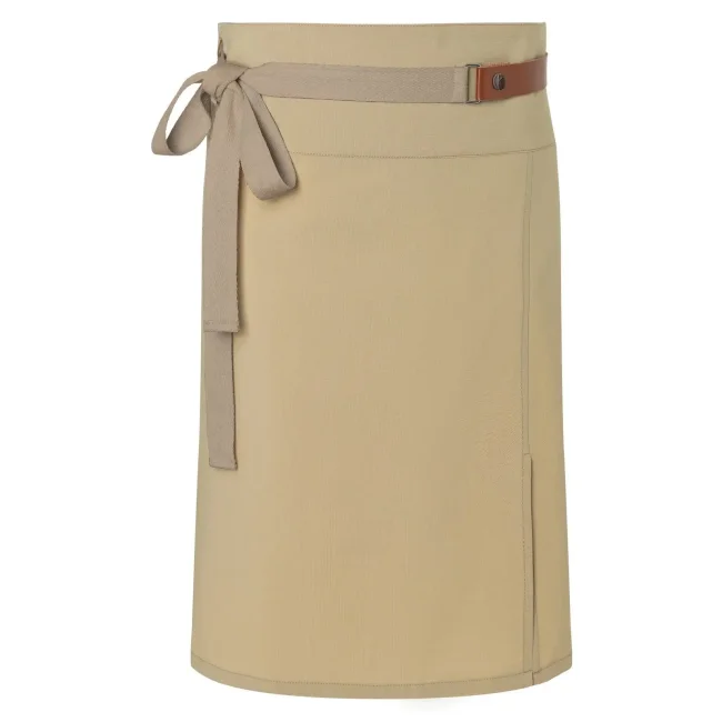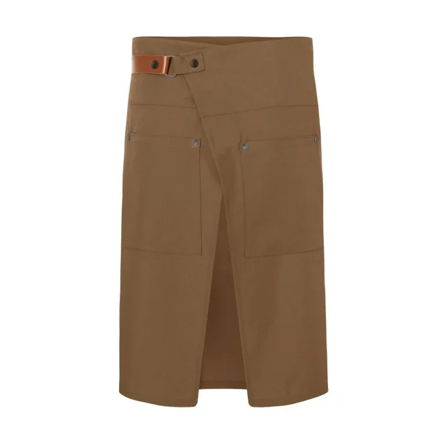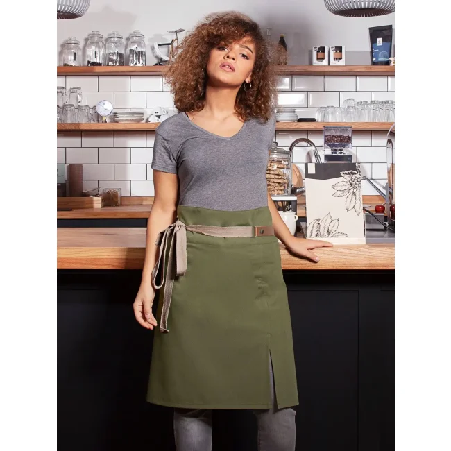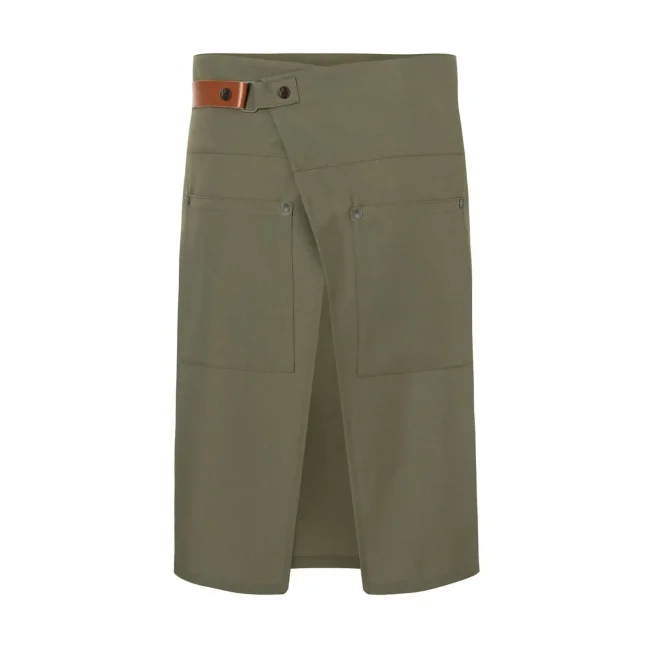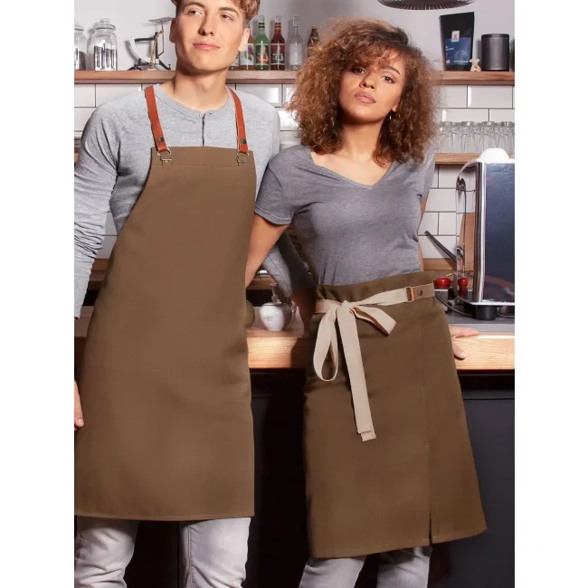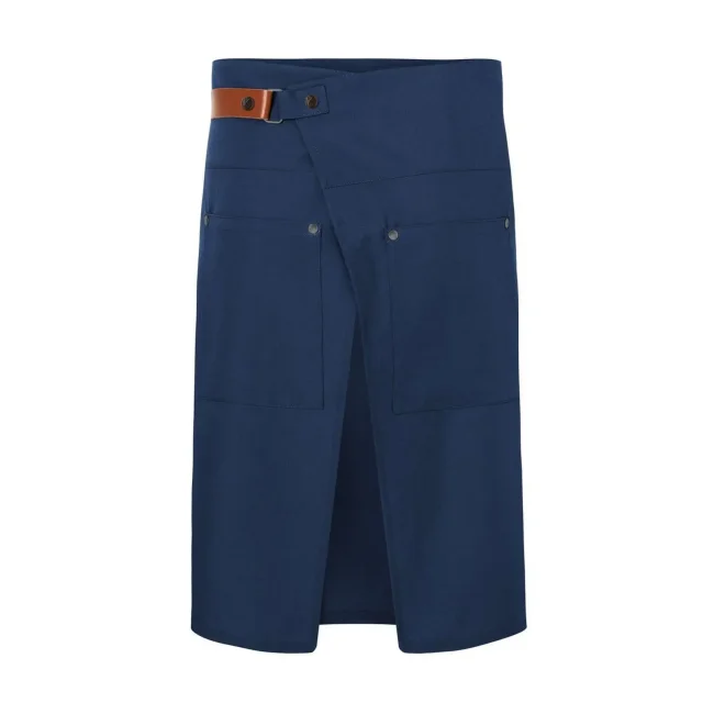 65% poliestere riciclato, 35% cotone. Grembiule moderno e confortevole. Lacci sul retro in vera pelle e cinturini a contrasto. Tutti i cinturini sono facilmente removibili e applicabili grazie ai bottoni a pressione, 2 tasche laterali (18 x 20 cm), spacchetti laterali. Misure: 110 x 65 cm. Lavabile a 60°C.