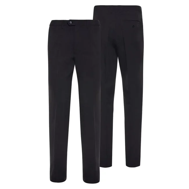 100% poliestere. Pantaloni da uomo con due tasche laterali, una posteriore ed un taschino a filetto. Passanti per cintura.