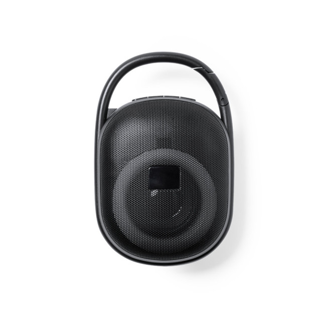 Potente speaker Bluetooth® da 5W con luce multicolore. Portatile e realizzata in resistente materiale ABS in nero opaco, con griglia e gancio integrati. Con luci LED multicolore e 5 posizioni di illuminazione. Connessione Bluetooth 5.0 + EDR (velocità di trasmissione dati migliorata). Pannello di controllo integrato sulla parte superiore della cassa e connettività completa, con funzione vivavoce, porta USB per la riproduzione da chiavetta USB, slot per schede micro SD (fino a 32 GB) e funzione radio FM. Con batteria al litio da 1.200 mAh e cavo di ricarica Type-C incluso. Targhetta integrata nella griglia per una facile personalizzazione e confezionato singolarmente in una scatola di design kraft, con manuale di istruzioni in inglese e spagnolo.