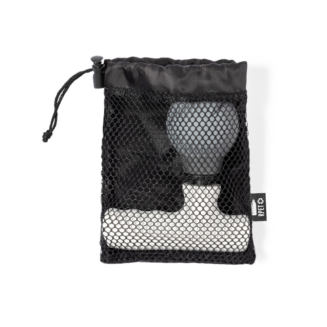 Massaggiatore elettrico. Aiuta a rilassare i muscoli, ad alleviare gli effetti dell'allenamento, a sciogliere le tensioni e a rivitalizzare il corpo. Con due impostazioni di intensità. Batteria ricaricabile a lunga durata da 800 mAh - cavo USB incluso. Con manuale d'uso in inglese e spagnolo. Presentato in una custodia in poliestere RPET con chiusura a cordoncino, realizzata in plastica riciclata per promuovere il riutilizzo dei rifiuti plastici e contribuire alla sostenibilità del pianeta. Etichetta distintiva RPET sulla custodia.