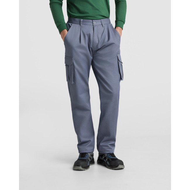 Pantalone lungo multitasche.· Tessuto resistente ed elasticizzato con fodera in pile all'interno per il calore. · Elastico in vita sul retro con passanti per cintura.· Due pinzature sotto i due passanti per cintura anteriori.· Due tasche anteriori.· Due tasche posteriori a filetto con pattina e chiusura velcro.· Due tasche cargo con pattina e chiusura velcro.· Etichetta Roly WRK esterna.· Cicli di lavaggio: x25