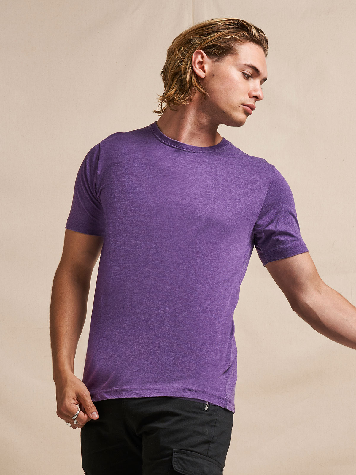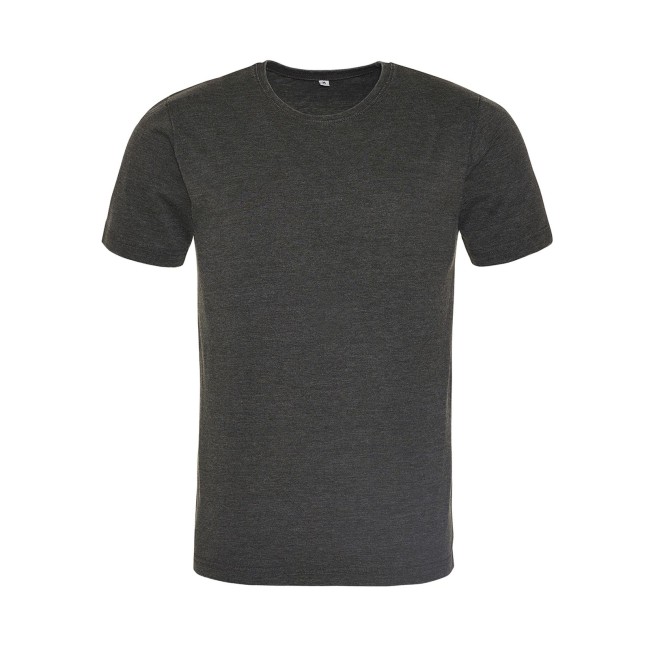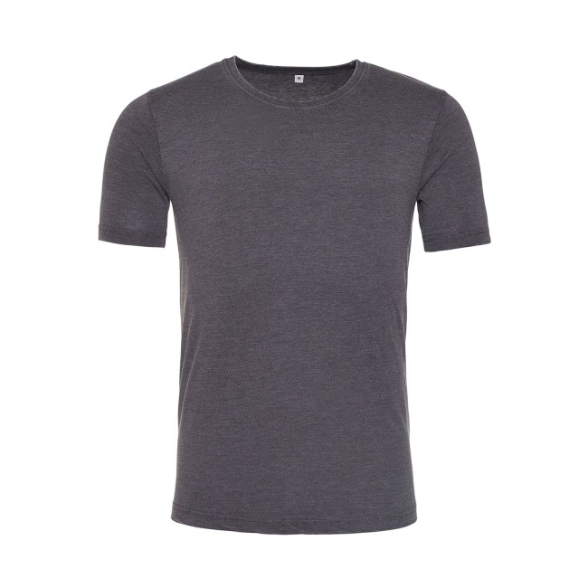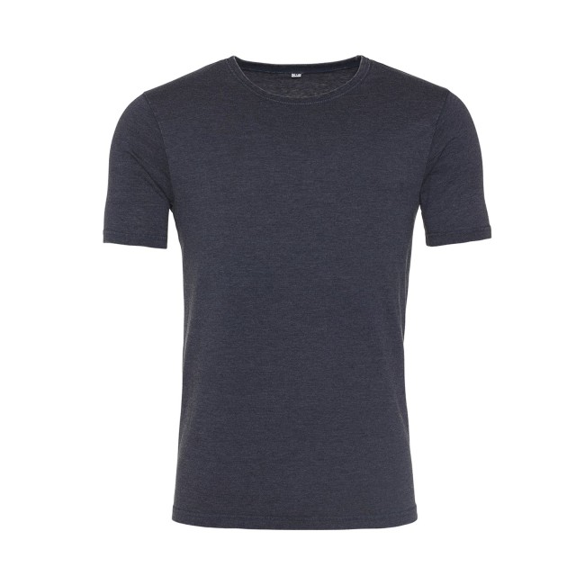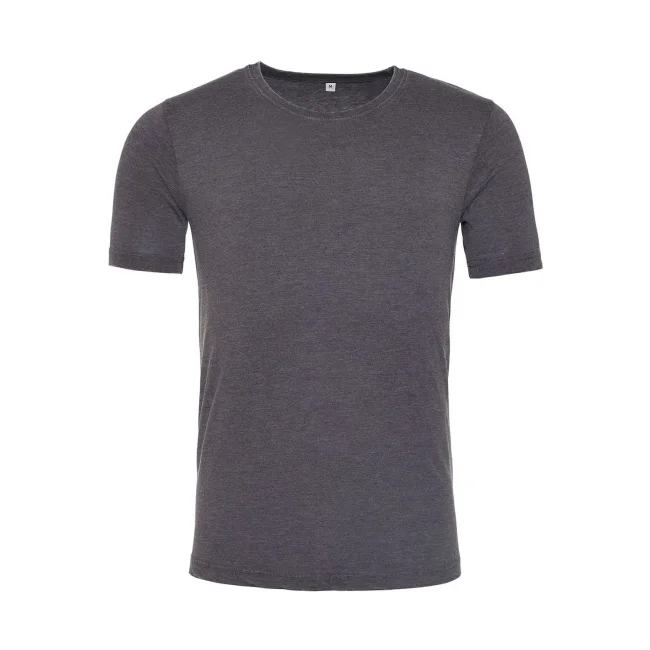 55% cotone ring-spun, 45% poliestere. T-shirt unisex manica corta set-in, girocollo a costine, effetto vintage slavato, taglio moderno, morbida al tatto, doppie cuciture sulle maniche e sul bordo inferiore, superficie adatta a stampa e ricami, etichetta al collo con solo la taglia.