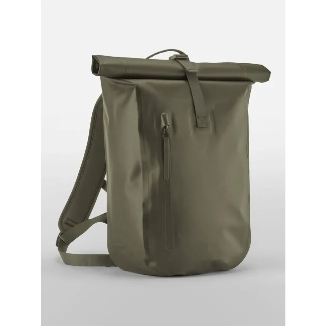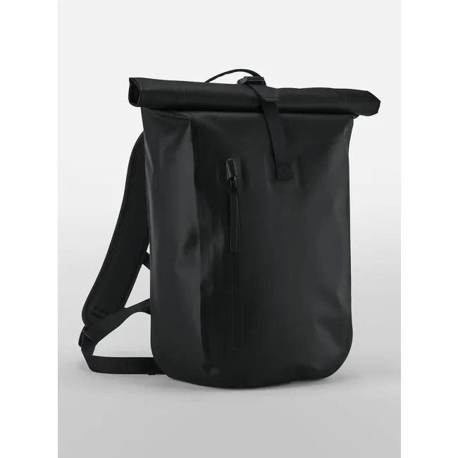 100% poliestere riciclato. Zaino con chiusura roll-top, tessuto impermeabile, scomparto principale impermeabile, tasca frontale con zip. Dimensioni: 28x12x42cm, Capacità: 14 litri. Etichetta strappabile.