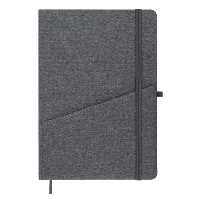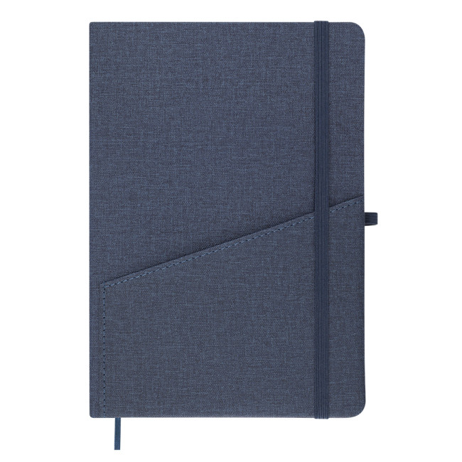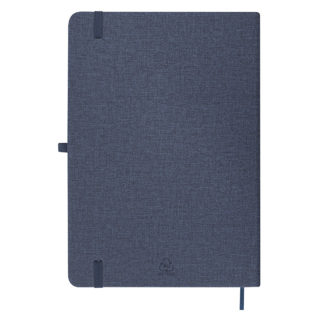Taccuino con copertina rigida in PU Riciclato, finitura lino. Con pratico taschino frontale, portapenne, segnalibro abbinato e fascia elastica di chiusura. Include 80 fogli color crema a righe. Con distintivo in PU Riciclato. Il PU Riciclato si distingue per la sua resistenza ed elasticità. Questo materiale riciclato e riciclabile è unopzione sostenibile che recupera le fibre scartate nei processi di produzione, riducendo al minimo gli sprechi di materiale e contribuendo a diminuire limpatto ambientale, mantenendo al tempo stesso le sue proprietà originali.