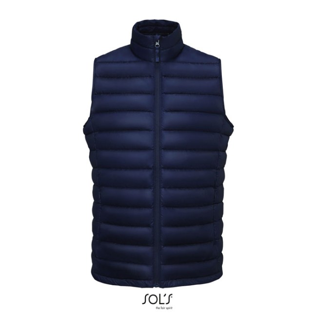 SOL'S WILSON BW UOMO. Piumino leggero da uomo in piuma. Tessuto esterno e fodera: 100% poliammide. Imbottitura 60% Sorona 40% poliestere riciclato. POLIAMMIDE 380T, Apertura con zip, 2 tasche anteriori con zip, 2 tasche interne Piccolo collo alto, Taglio aderente, Sistema di piegatura ''In bag'' con stopper. OEKO-TEX®. Venduto solo con la stampa.