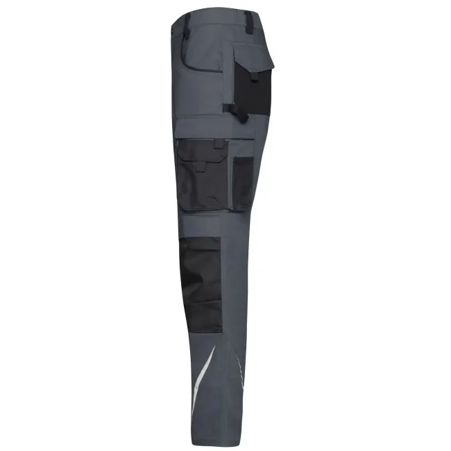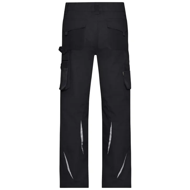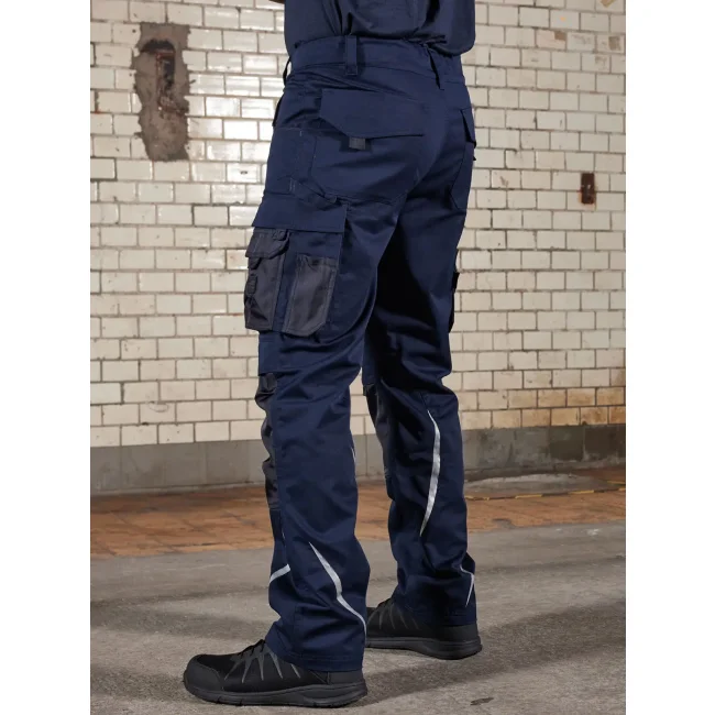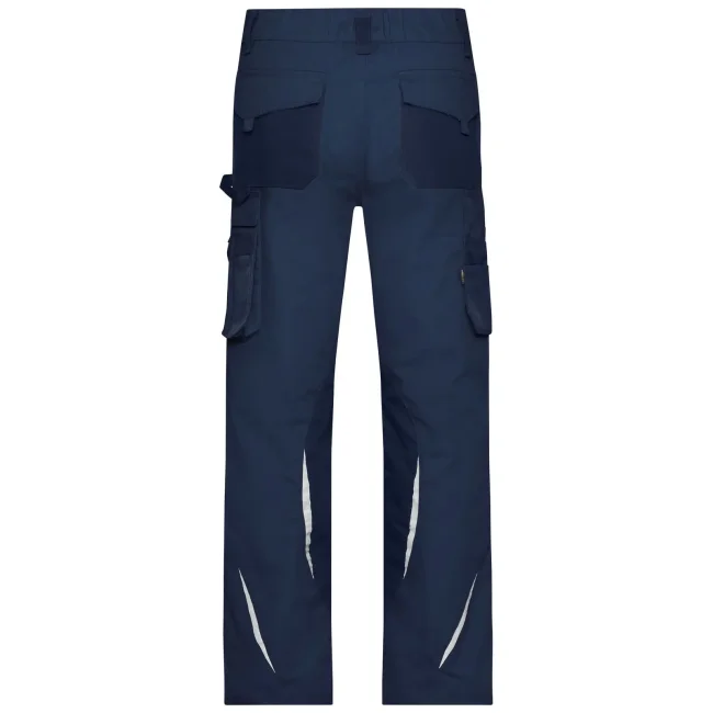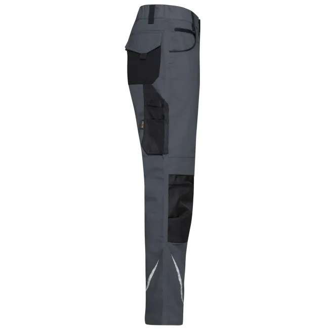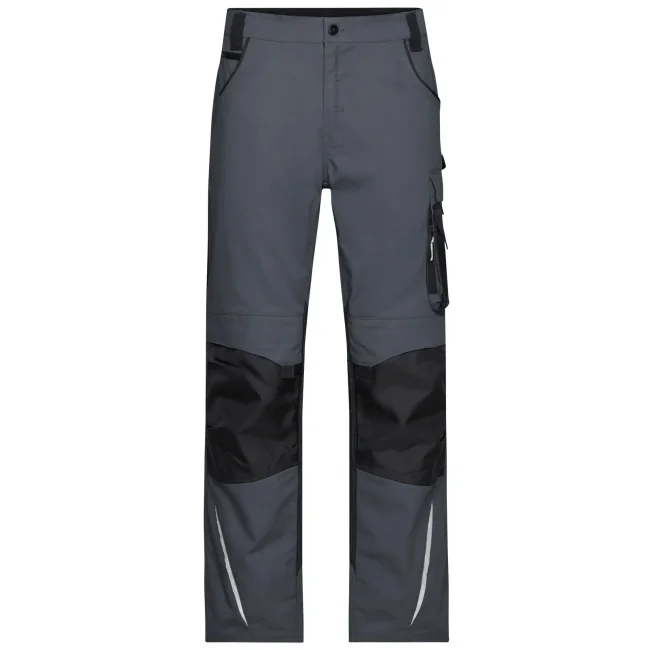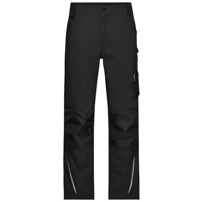 65% poliestere, 35% cotone. Pantalone da lavoro in tessuto misto, robusto e resistente, interno felpato, orlo elastico con passanti, tasca per ginocchiera rinforzata con CORDURA®, tripla cucitura antistrappo, varie tasche, elementi riflettenti (senza funzione protettiva/senza DPI) sul davanti e sul retro.