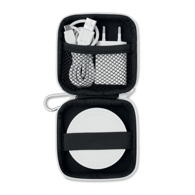 Set caricatore wireless in ABS, include presa EU e cavo di carica con micro USB. Confezionato in custodia in EVA/PU. Output: DC9V/1.66A (5W).