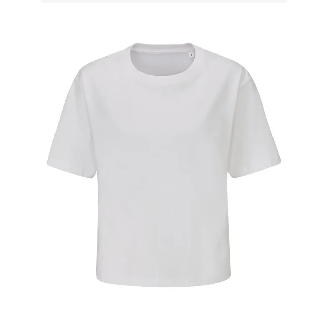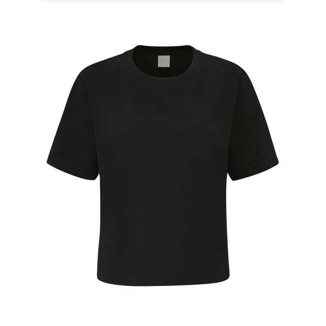 100% cotone organico. T-shirt donna manica corta, lunghezza cropped, vestibilità morbida, etichetta al collo strappabile, lavabile a 40°C.