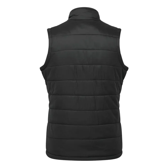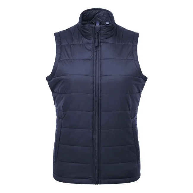 100% nylon riciclato, fodera e imbottitura 100% poliestere riciclato. Gilet da donna, imbottito leggero e impmeabile, con cuciture orizzontali, tasche laterali con zip, tasca interna, puo' essere ricamato, ripiegabile nella sua sacca.