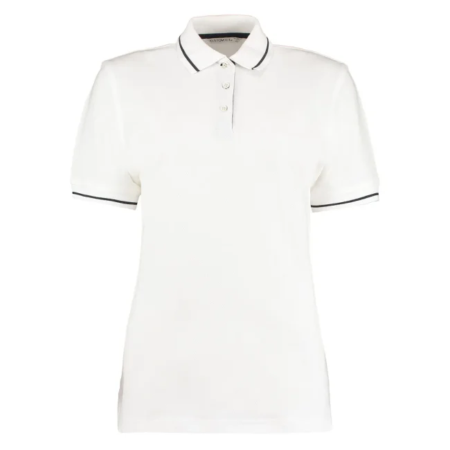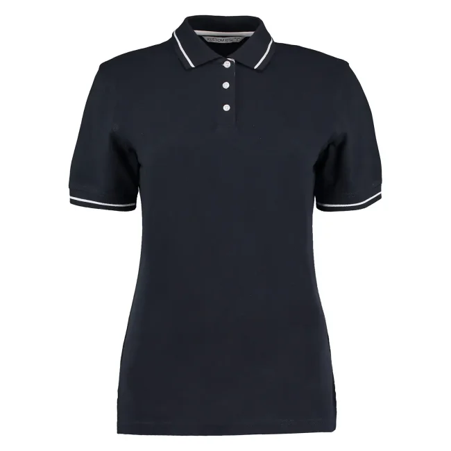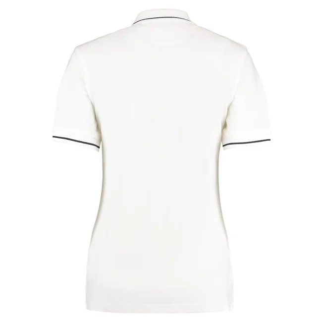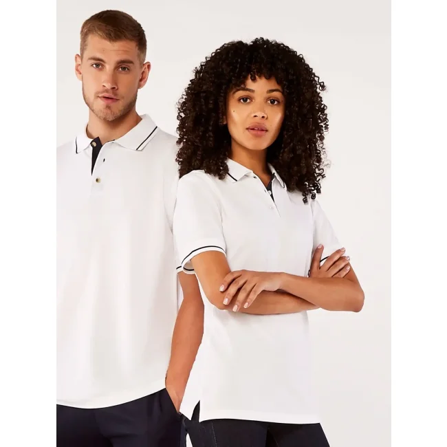 100% cotone piqué pettinato. Polo a maniche corte set-in, parte interna del colletto di colore contrastante riga in contrasto su colletto e giromanica. Struttura con cuciture e spacchetti laterali, 3 bottoni effetto perlato.