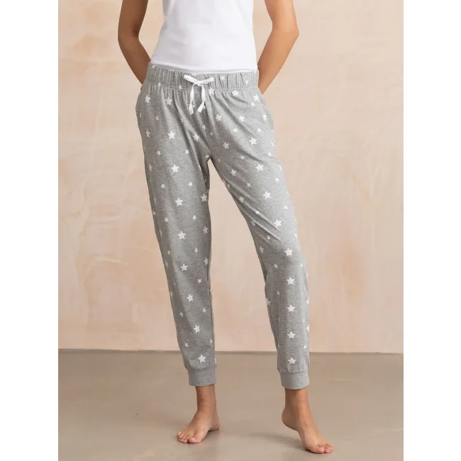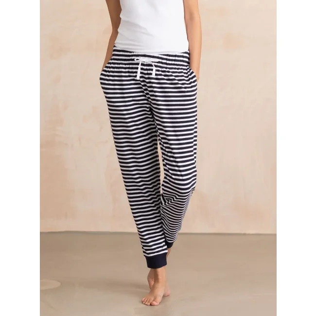 96% cotone, 4% elastan. Pantaloni da donna single jersey con vita elasticizzata e cordini, orlo con polsino, tasche laterali, etichetta strappabile.