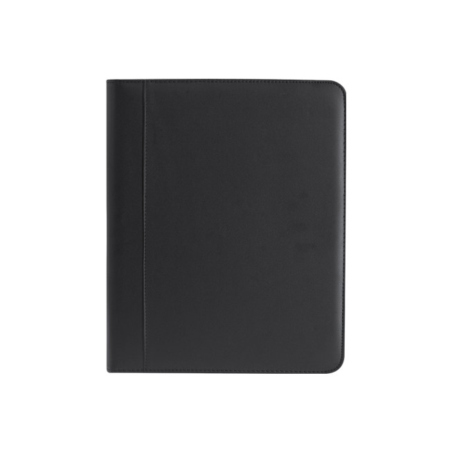 Elegante cartellino con cerniera in PU riciclato. Con 4 scomparti interni in PU riciclata e portapenne. Include un blocco note bianco di 25 pagine.