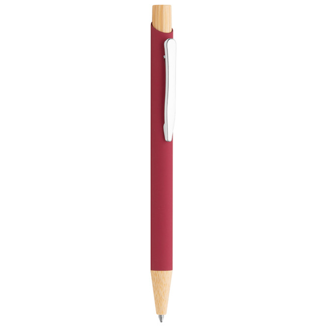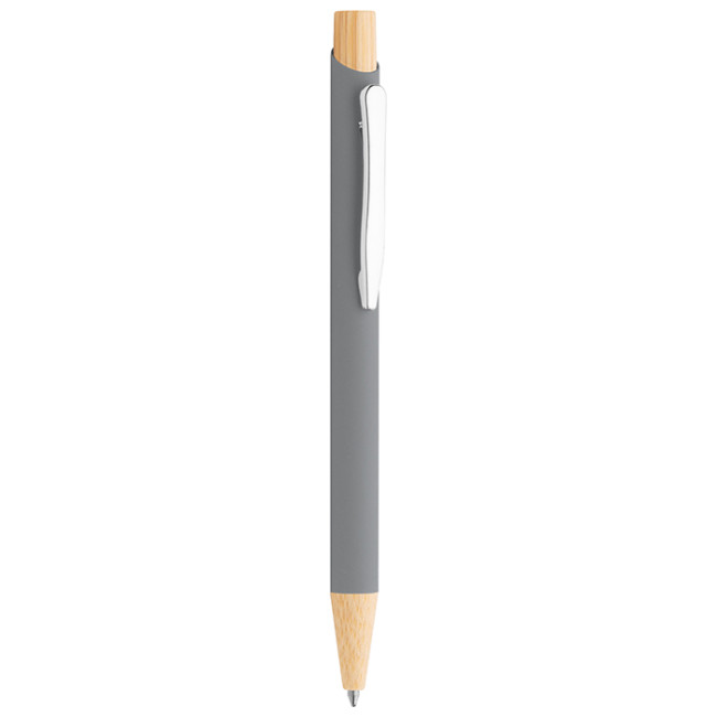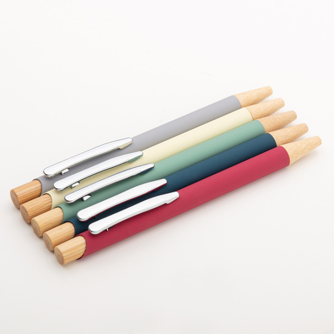 penna a sfera in metallo meccanismo a scatto fusto lacca soft touch minuterie in bamboo refill nero