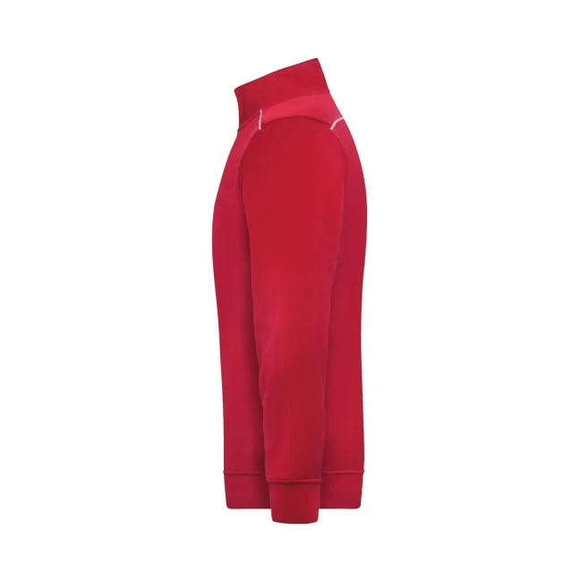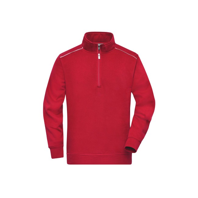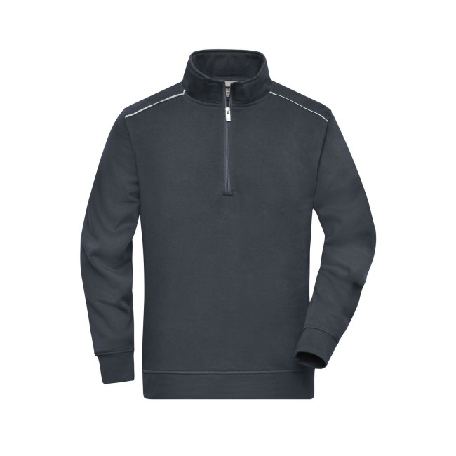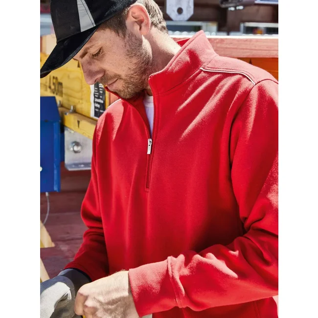 70% cotone, 30% poliestere. Felpa da lavoro con zip quarto, tessuto misto cotone easy-care e poliestere, resistente, cotone ring-spun, interno felpato, inserti contrastanti sul davanti e sul retro, bande a costine con elastan sui polsini e sul girovita, zip YKK, lavabile a 60° C e ideale per asciugatura in asciugatrice.