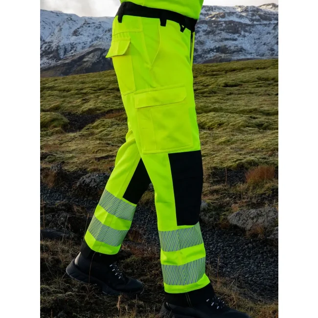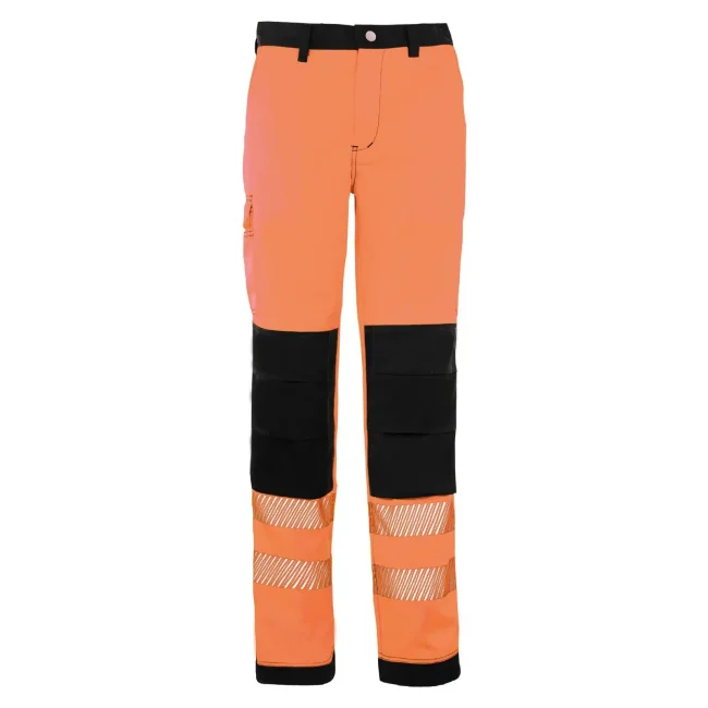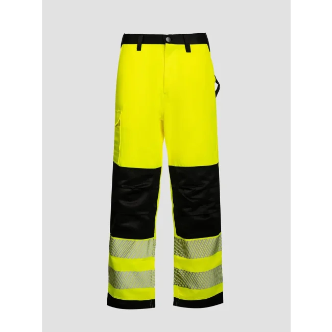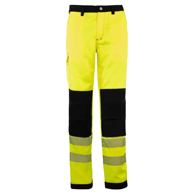 65% poliestere, 35% cotone. Pantaloni ad alta visibilità, EN ISO 20471:2013/A1:2016, classe 2. Due bande riflettenti larghe 7cm attorno alle gambe, cuciture rinforzate nei punti di stress. Il produttore garantisce le proprietà riflettenti secondo la norma EN per 25 cicli di lavaggio fino a 60°C, dotato di codice a barre EAN, confezionati singolarmente.