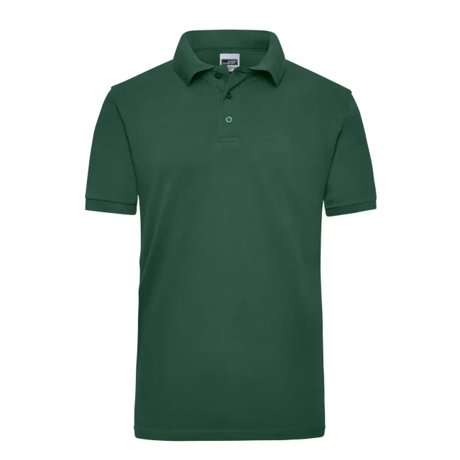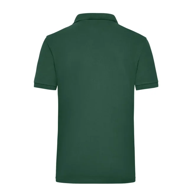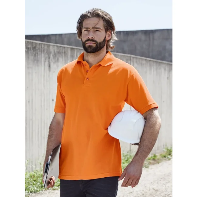 100% cotone piqué. Polo piqué-jersey manica corta, colletto polo, giromanica in maglia, doppie cuciture, nastro di rinforzo al collo, spacchetti laterali. Bianco lavabile a 95°c, colorato lavabile a 60°c.