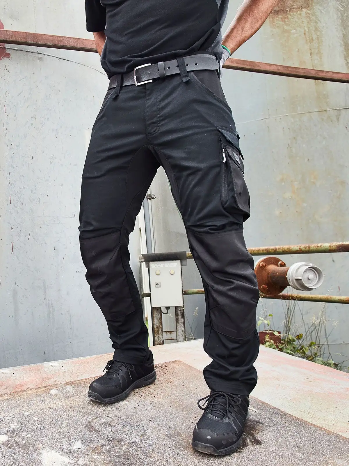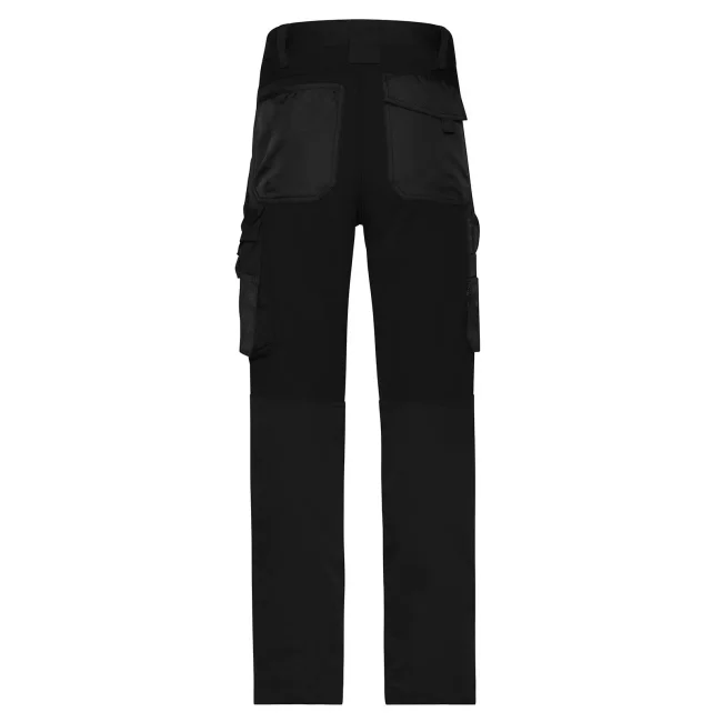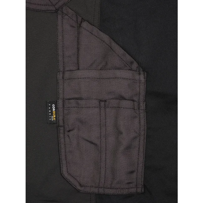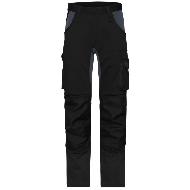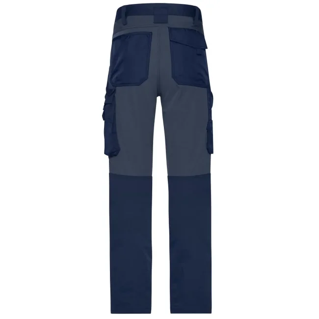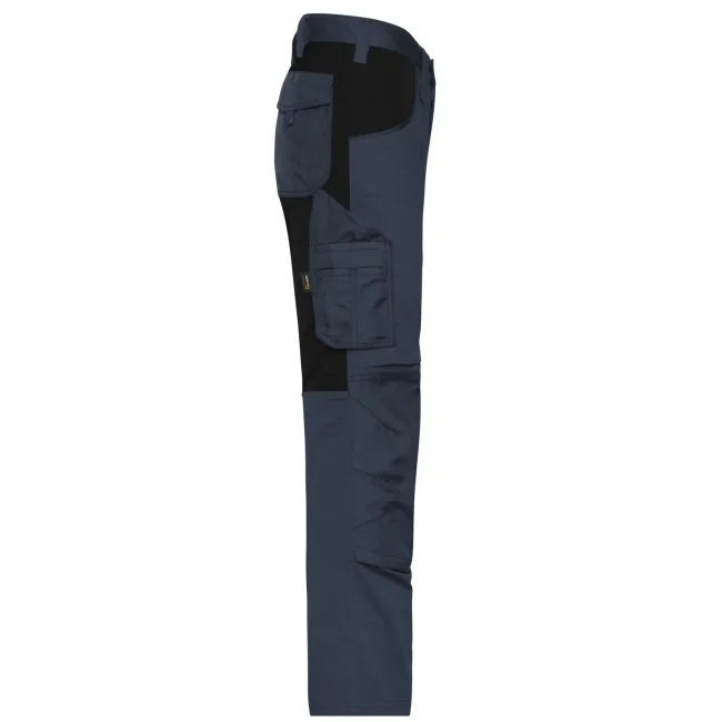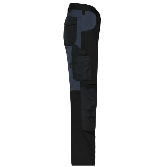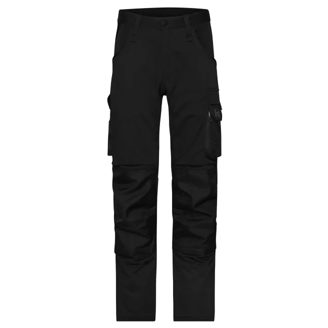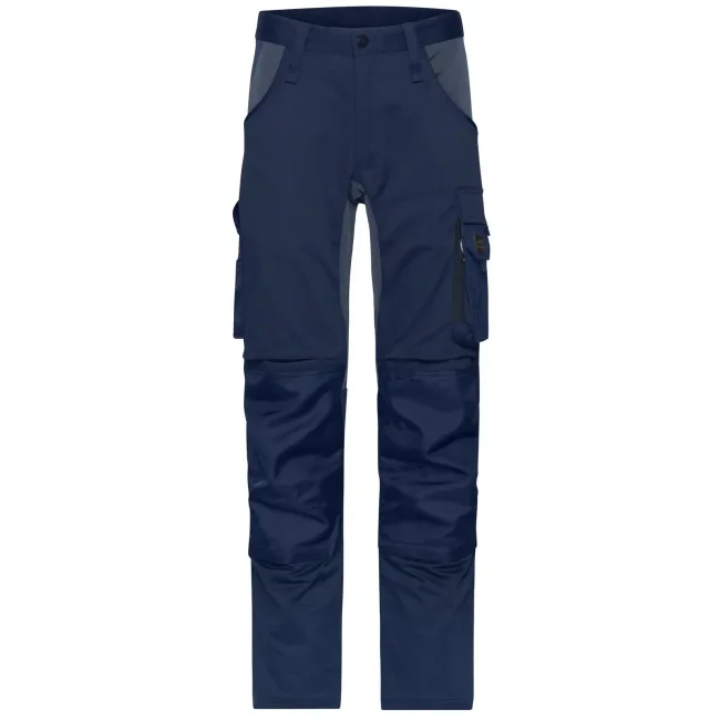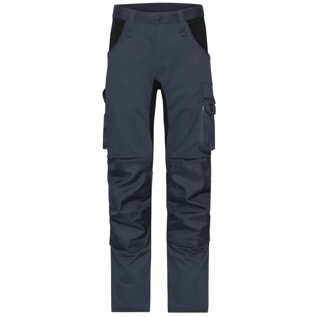 65% poliestere ric, 32% cotone org, 3% elastene. Tessuto esterno: 65% poliestere riciclato, 32% cotone organico, 3% elastan. Tessuto esterno 2: 94% poliammide, 6% elastan. Inserti: 100% poliammide. Pantaloni da lavoro, resistenti, elasticizzati, girovita con passanti per cintura, tasche imbottite sulle ginocchia e tasche dietro rinforzate con CORDURA, cuciture triple, varie tasche porta-attrezzi, zip: YKK.