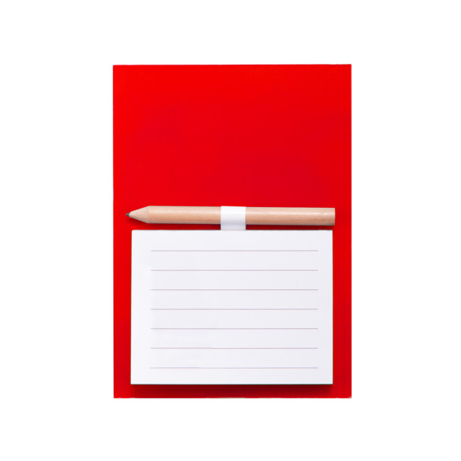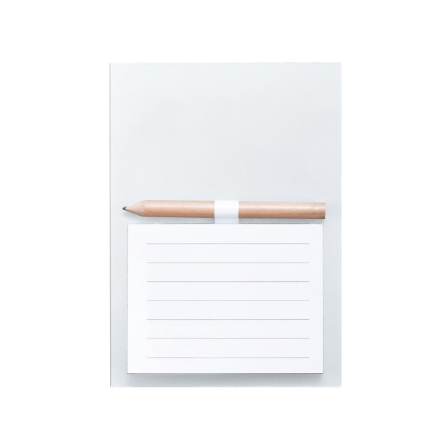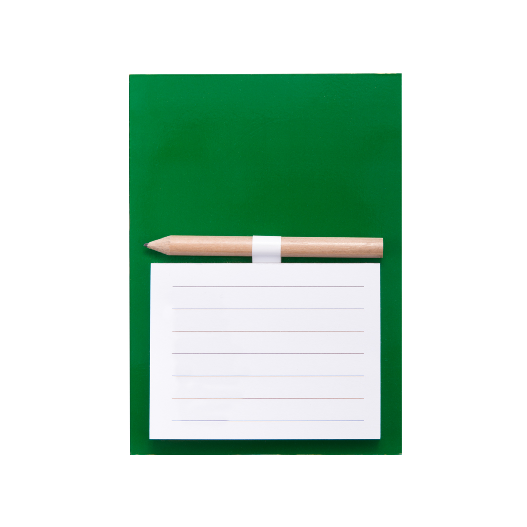 Calamita con block notes in robusto cartoncino in una varietà di colori vivaci. Blocco di 40 fogli con layout a una riga e porta mini matita incluso.