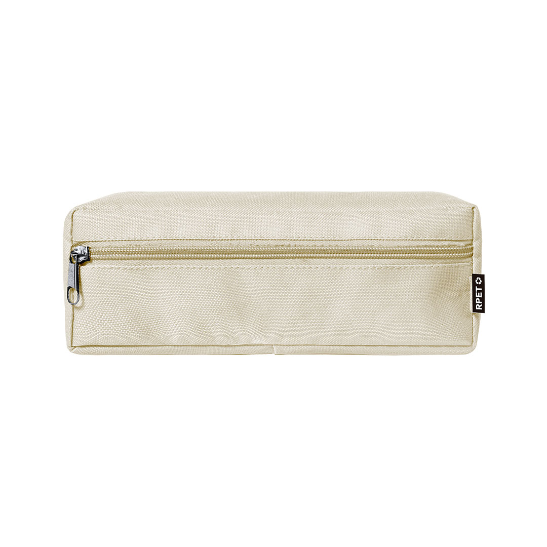 Astuccio in resistente poliestere 600D RPET, realizzato con plastica riciclata, al fine di promuovere il riutilizzo dei rifiuti plastici e aiutare la sostenibilità del pianeta. Con chiusura frontale con zip e tiretto in metallo. Distintivo RPET sull'etichetta.