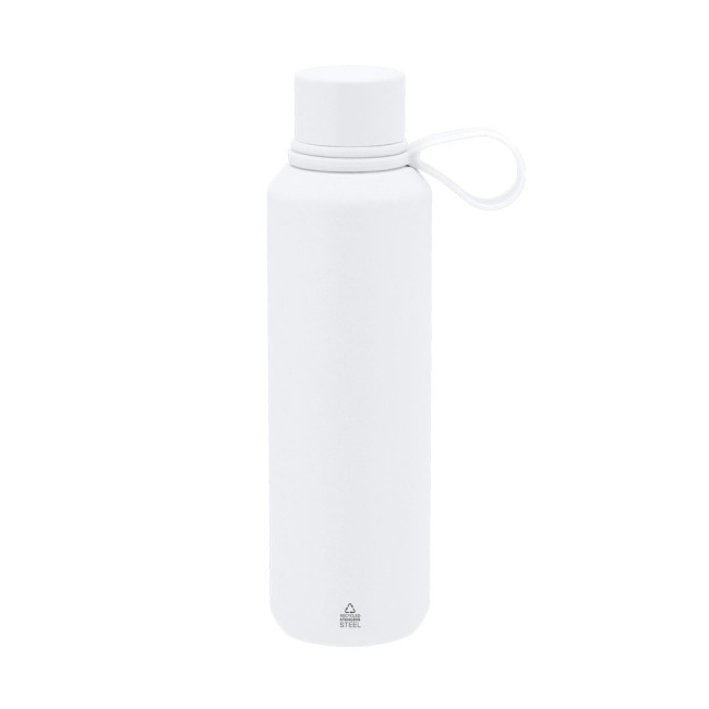 Bottiglia termica da 630 ml di capacità, realizzata in Acciaio Inox Riciclato a doppia parete. Include maniglia in silicone abbinata. Priva di BPA. Con distintivo acciaio inox riciclato. L'acciaio è uno dei materiali più richiesti e che può essere trovato quasi ovunque, da prodotti di uso quotidiano a grandi costruzioni. Con innumerevoli proprietà, tra cui la durabilità e l'elevato grado di riutilizzo, lo rende un'alternativa molto apprezzata nelle soluzioni di sostenibilità. Adeguatamente trattato, consente di ottenere nuove risorse di utilizzo infinito.